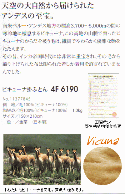 天空の大自然から届けられたアンデスの至宝。 「ビキューナ掛ふとん」をご紹介します。